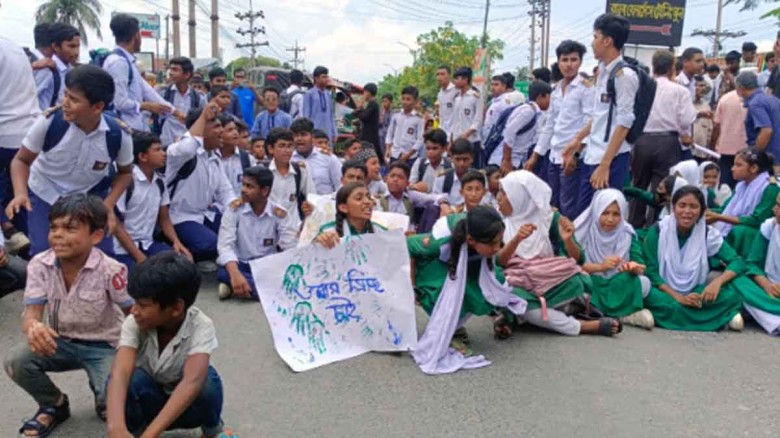 গাজীপুর মহানগরের পোড়াবাড়ি এলাকায় ঢাকা ময়মনসিংহ মহাসড়ক অবরোধ করে শিক্ষার্থীরা...