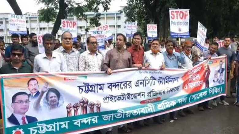 চট্টগ্রাম বন্দরের এনসিটি বেসরকারিকরণের বিরুদ্ধে শ্রমিক দলের বিক্ষোভ...