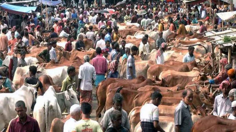 নওগাঁর সাপাহারে কুরবানীর হাটে পশুতে ভরে গেছে; নেই ক্রেতাদের আনাগোনা...