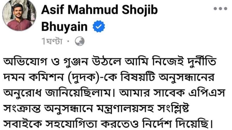 অভিযোগ ও গুঞ্জন উঠলে আমি নিজেই দুদক-কে বিষয়টি অনুসন্ধানের অনুরোধ জানিয়েছিলাম...