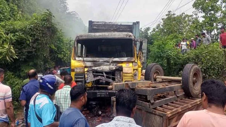 খাগড়াছড়িতে ট্রাক্টরের মুখোমুখি সংঘর্ষে সুন্দরবন কুরিয়ার সার্ভিসের গাড়িতে আগুন- আহত ৫...