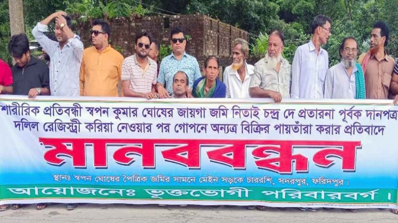 প্রতিবন্ধীর জমি আত্মসাতের প্রতিবাদে ভুক্তভোগী পরিবারের মানববন্ধন...