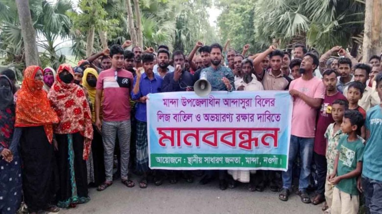 আন্দাসুরা বিলে অবৈধভাবে পুকুর ও দীঘি খনন বন্ধের দাবিতে মানববন্ধন...