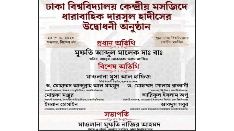 ঢাবির কেন্দ্রীয় মসজিদে 'হাদীসের দরস' শুরু হচ্ছে আগামীকাল...