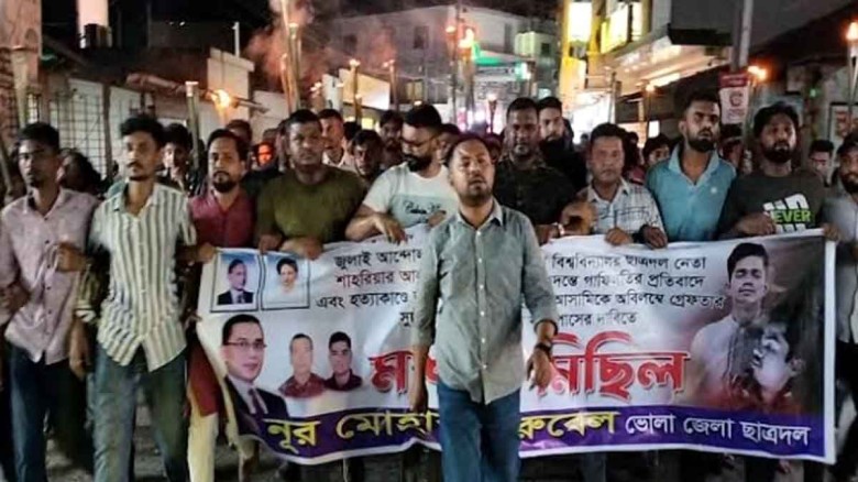 ঢাবি ছাত্রদল নেতা সাম্য হত্যার বিচারের দাবিতে ভোলায় বিক্ষোভ ও মশাল মিছিল...