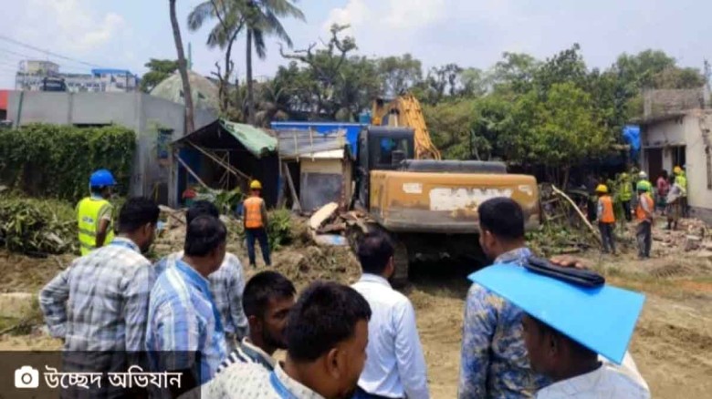 সাভারে মেট্রো রেলের ডিপোতে অবৈধ স্থাপনা উচ্ছেদ অভিযান...