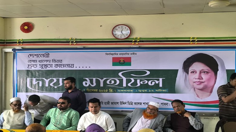 পাবনার ভাঙ্গুড়া উপজেলায় বিএনপির চেয়ারপার্সন ও সাবেক প্রধানমন্ত্রী বেগম খালেদা জিয়ার দ্রুত সুস্থতা, দীর্ঘায়ু ও মঙ্গল কামনায় দোয়া মাহফিল অনুষ্ঠিত হয়েছে।