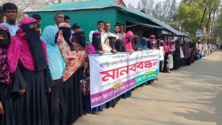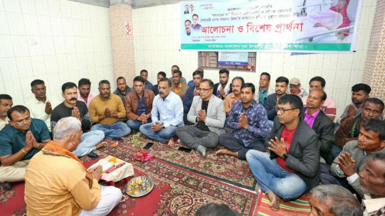 সকলকে নিয়ে বিশাল কেক কেটে পরিবেশন করা হয়।