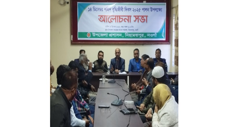 নওগাঁর নিয়ামতপুরে শহীদ বুদ্ধিজীবী দিবস পালিত হয়েছে। রবিবার (১৪ ডিসেম্বর) সকালে দিবসটি উপলক্ষে উপজেলা পরিষদ সভাকক্ষে আলোচনা সভা অনুষ্ঠিত হয়।
