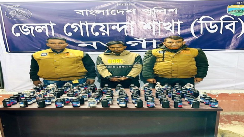 পুলিশ সূত্রে জানা যায়,জেলা পুলিশ সুপার মোহাম্মদ তারিকুল ইসলামের নির্দেশে ডিবি পুলিশের একটি দল মঙ্গলবার রাতে গোপন সংবাদের ভিত্তিতে ধামইরহাটের নাহার ফিলিং স্টেশনের সামনে রাস্তার পাশে চটের বস্তা নিয়ে অবস্থানরত এক যুবকের গতিবিধি সন্দেহজনক মনে হলে তাকে জিজ্ঞাসাবাদ করা হয়। পরে তার কাছে থাকা চটের বস্তা তল্লা*শি করে ১২০ বোতল ফেন্সি*ডিল উ*দ্ধার করা হয়।