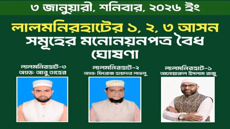 লালমনিরহাট জেলার ১, ২ ও ৩ আসনে বাংলাদেশ জামায়াতে ইসলামীর মনোনীত প্রার্থীদের মনোনয়নপত্র যাচাই-বাছাই শেষে বৈধ ঘোষণা করা হয়েছে।