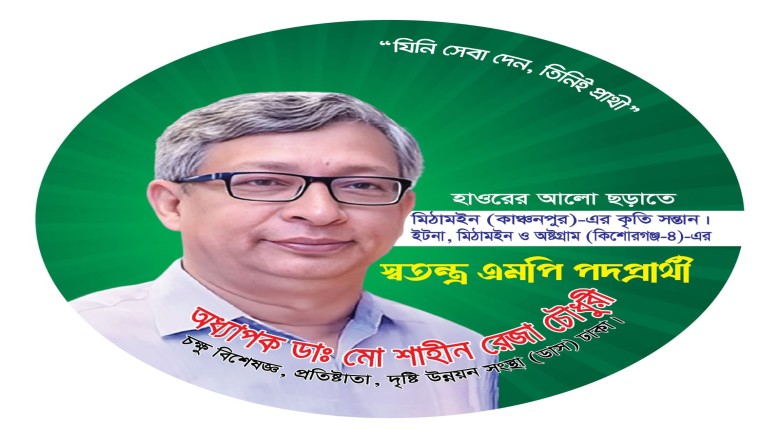 মানবিক চিকিৎসক হিসেবে পরিচিত অধ্যাপক ডা. শাহীন রেজা চৌধুরীর প্রার্থিতা ফিরে পাওয়ায় কিশোরগঞ্জ-৪ আসনে নির্বাচনী মাঠে নতুন মাত্রা যোগ হলো।
