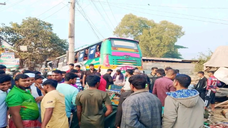 একই সময়ে বাসটির নিচে চাপা পড়ে রাস্তায় দাঁড়িয়ে থাকা একটি সিএনজিচালিত অটোরিকশা। বাসের চাপে অটোরিকশাটি একেবারে চূর্ণবিচূর্ণ হয়ে গেছে।