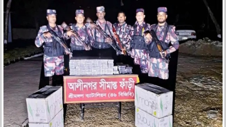 শ্রীমঙ্গল ব্যাটালিয়নের (৪৬ বিজিবি) অধিনায়ক লেফটেন্যান্ট কর্নেল সরকার আসিফ মাহমুদ বিষয়টি নিশ্চিত করে জানান, গোপন সংবাদের ভিত্তিতে শনিবার রাতে আলীনগর সীমান্ত এলাকায় অভিযান চালানো হয়। এ সময় মালিকবিহীন অবস্থায় আনুমানিক ৫ লাখ ১০ হাজার টাকা মূল্যের ২ হাজার ৫৫০ প্যাকেট ভারতীয় সিগারেট উদ্ধার করা হয়।