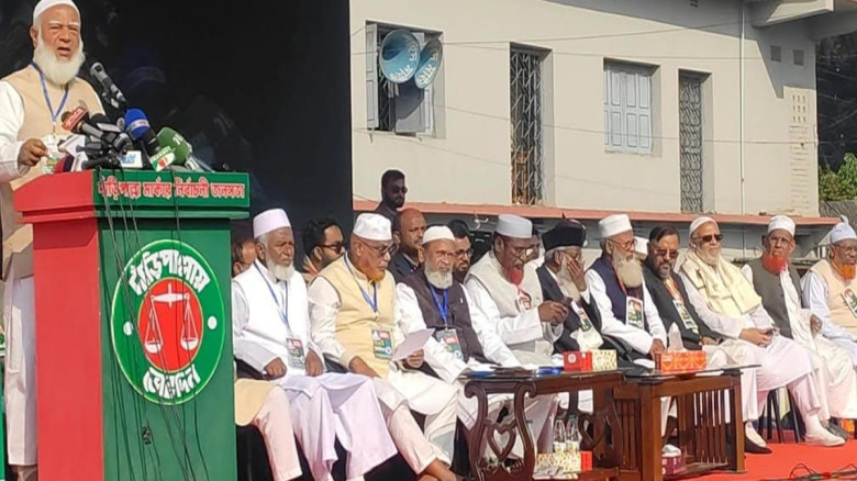 জনসভায় প্রধান অতিথির বক্তব্যে জামায়াতের আমির ডা. শফিকুর রহমান বলেন, জনগণের রায়ে ক্ষমতায় গেলে জামায়াতে ইসলামী ন্যায়ভিত্তিক সমাজব্যবস্থা প্রতিষ্ঠা করবে। তিনি দৃঢ় কণ্ঠে ঘোষণা দেন,