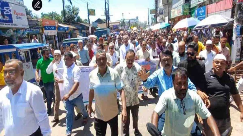 বাঁধ নির্মাণে অনিয়ম মনপুরায় মানববন্ধন