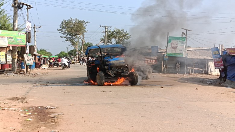 নওগাঁর পোরশা উপজেলার নিতপুর কাপালীর মোড়ে মাটি ভর্তি কাঁকড়া ট্রাক্টরের চাপায় এক স্কুলছাত্রের মৃত্যু হয়েছে। এ ঘটনায় ক্ষুব্ধ জনতা ট্রাকটিতে আগুন ধরিয়ে দিয়েছে।
