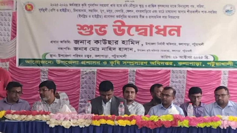 ২০২৫-২০২৬ অর্থ বছরে কৃষি পূনর্বাসন খাত হতে রবি মৌসুমে ক্ষুদ্র ও প্রান্তিক কৃষকদের মাঝে বিনামূল্যে গম, সরিষা, সূর্যমুখী, চিনাবাদাম, সয়াবিন, মুগ, মুসুর, ফেলন, বসতবাড়িতে এবং মাঠে চাষযোগ্য আগাম শীতকালীন শাক-সবজির প্রণোদনা কর্মসূচির আওতায় বীজ ও রাসায়নিক সার বিতরণ করা হয়েছে।