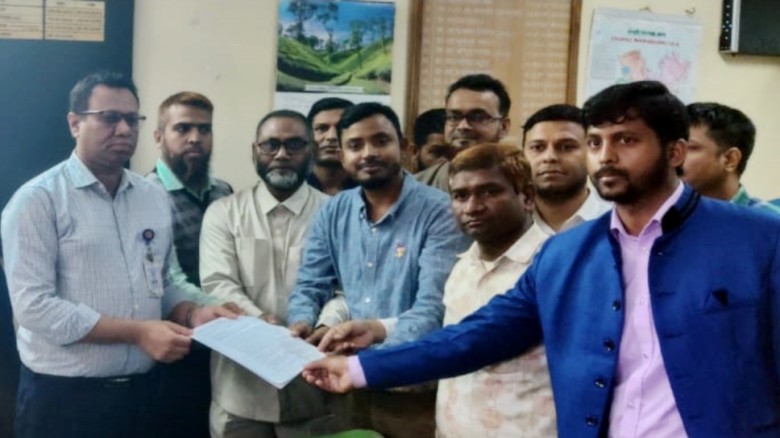 চাঁপাইনবাবগঞ্জে বুধবার বিকেলে ১০ম গ্রেডের (দ্বিতীয় শ্রেণী) দাবিতে জেলা প্রশাসক বরাবরে স্মারকলিপি দিয়েছেন ডিপ্লোমা মেডিকেল টেকনোলজিস্ট ও ফার্মাসিস্টরা।