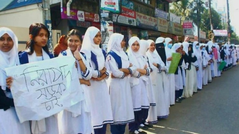 সম্প্রতি স্কুলে যাওয়ার পথে সিলেট সরকারি মহিলা কলেজের প্রভাষক ফৌজিয়া আক্তার ও তার দুই কন্যা দ্রুতগতির মোটরসাইকেলের ধাক্কায় গুরুতর আহত হওয়ার ঘটনার প্রতিবাদে এই মানববন্ধন আয়োজন করা হয়।