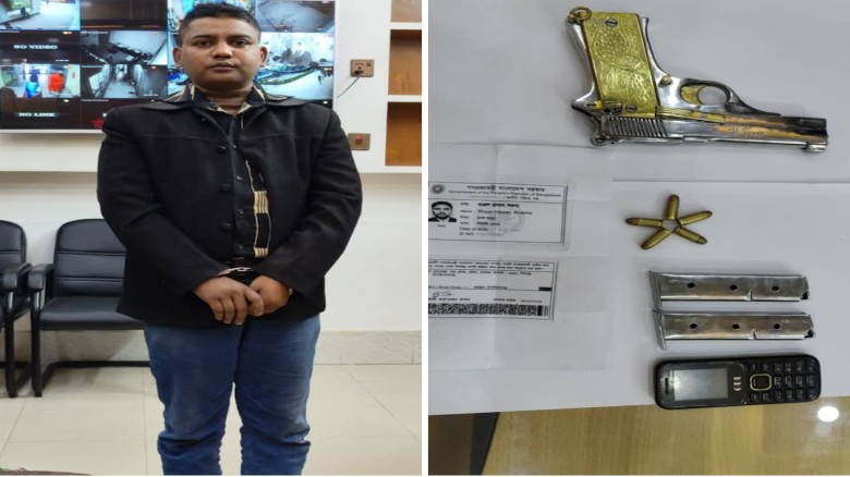 আটককৃত যুবক রয়েল হাসান অরণ্য হলেন শিবগঞ্জ উপজেলার মনাকষা ইউনিয়নের পারচুকা মাদ্রাসা বাজার এলাকার মৃত আল মামুনের ছেলে।পুলিশ জানায়, গোপন সংবাদের ভিত্তিতে পুলিশ জানতে পারে শিবগঞ্জ থেকে চাঁপাইনবাবগঞ্জ অভিমুখী একটি সিএনজিতে এক ব্যাক্তি বিদেশী পিস্তলসহ আসছে। তার পরিপ্রেক্ষিতে চাঁপাইনবাবগঞ্জের মহানন্দা টোল প্লাজায় চেকপোস্ট বসিয়ে তল্লাশি শুরু করে পুলিশ। পরে একটি সিএনজিতে বসা অবস্থায় ১ টি বিদেশী পিস্তলসহ রয়েল হাসান অরণ্য নামে একজনকে আটক করে পুলিশ।